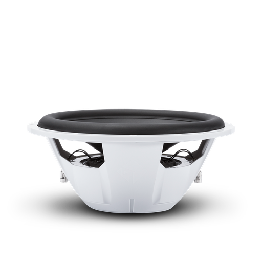 The RM112D4 is a white 12” Prime R1 subwoofer designed for marine watercraft or powersports applications. It features color matched grille and is UV and moisture resistant. Can be used in sealed, vented or infinite baffle installations.