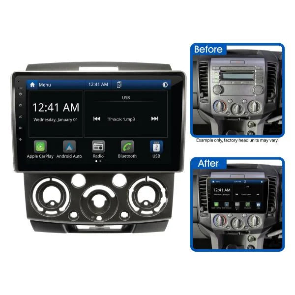 The Aerpro AMFO1 9" Multimedia Receiver with Wireless Apple CarPlay and Android Auto suits Ford Ranger (2006-2011) and Mazda BT-50 (2007-2011) vehicles. Featuring a large 9" capacitive touchscreen display, this Multimedia Receiver has Apple CarPlay and Android Auto which can be used wireless or wired, built-in Bluetooth for hands-free phone calls & wireless audio streaming, dual rear USB inputs as well as an AM/FM radio tuner. Sound quality is superb with 50Wx4 max output, 8 band graphic EQ and time alignment capabilities, amplifiers can be added to the system via the 4V/5CH RCA preouts. Supplied as a complete Head Unit Upgrade Kit, the Aerpro AMFO1 includes all the parts required to complete the installation conveniently packaged into one kit.