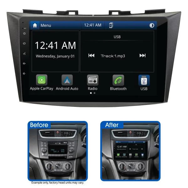 The Aerpro AMSZ2 9" Multimedia Receiver with Wireless Apple CarPlay and Android Auto suits Suzuki Swift (2011-2017) vehicles (models without steering wheel controls). Featuring a large 9" capacitive touchscreen display, this Multimedia Receiver has Apple CarPlay and Android Auto which can be used wireless or wired, built-in Bluetooth for hands-free phone calls & wireless audio streaming, dual rear USB inputs as well as an AM/FM radio tuner. Sound quality is superb with 50Wx4 max output, 8 band graphic EQ and time alignment capabilities, amplifiers can be added to the system via the 4V/5CH RCA preouts. Supplied as a complete Head Unit Upgrade Kit, the Aerpro AMSZ2 includes all the parts required to complete the installation and retains important vehicle features including the USB input.